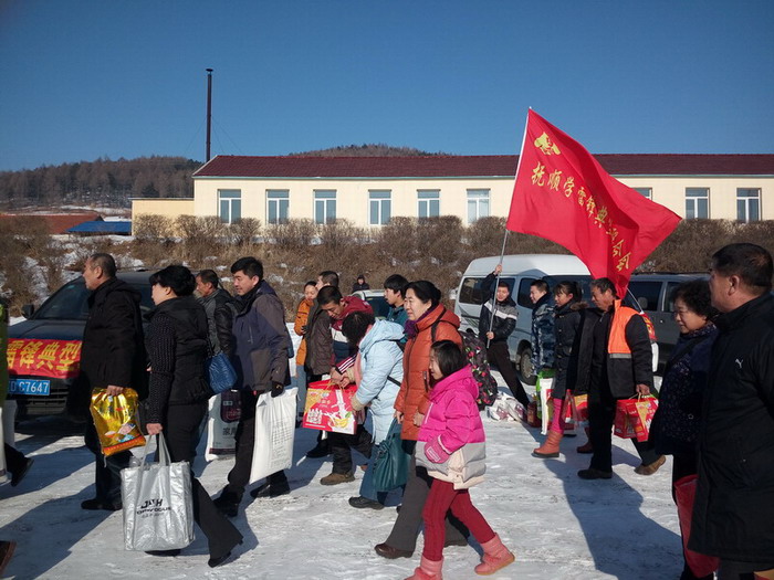 早上9點(diǎn),滿載著大米、白面、豆油等捐助物的7輛汽車從撫順北站出發(fā),一路向東前往清源甘井子小學(xué)。中午10點(diǎn)半,車隊(duì)到達(dá)清源英額門鎮(zhèn),在當(dāng)?shù)貙W(xué)雷鋒典型聯(lián)合會分會劉先生的帶領(lǐng)之下,車隊(duì)于11點(diǎn)到達(dá)了清源甘井子小學(xué)。車輛剛剛駛?cè)雽W(xué)校,迫不及待的學(xué)生以及學(xué)生家長們就都出門迎接了出來。找到各自幫扶對象的17位孩子見到了自己的資助人都激動得熱淚盈眶。在甘井子小學(xué)高校長的帶領(lǐng)下,大家把資助物品紛紛運(yùn)到了學(xué)校食堂。在食堂把物品授予了這17位孩子,百姓雷鋒們也為他們派發(fā)了新春紅包,并與他們進(jìn)行了親切的交流,目的是鼓勵這17位家庭困難的學(xué)生好好學(xué)習(xí),勇敢的面對生活。